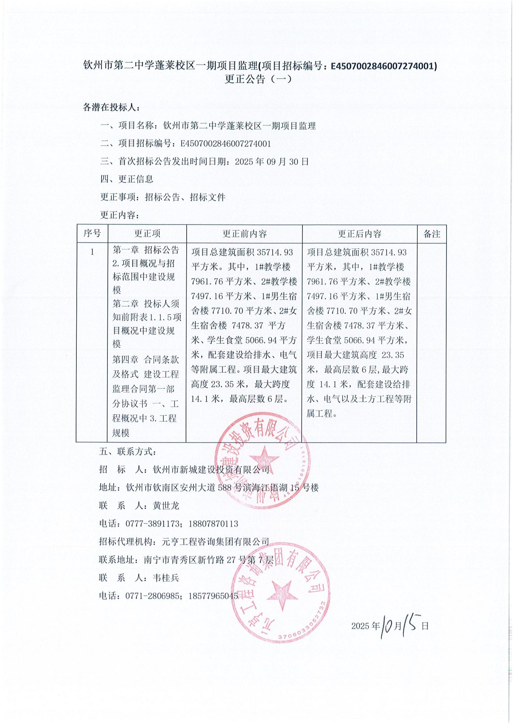 欽州市第二中學蓬萊校區(qū)一期項目監(jiān)理(項目招標編號:E450700284...