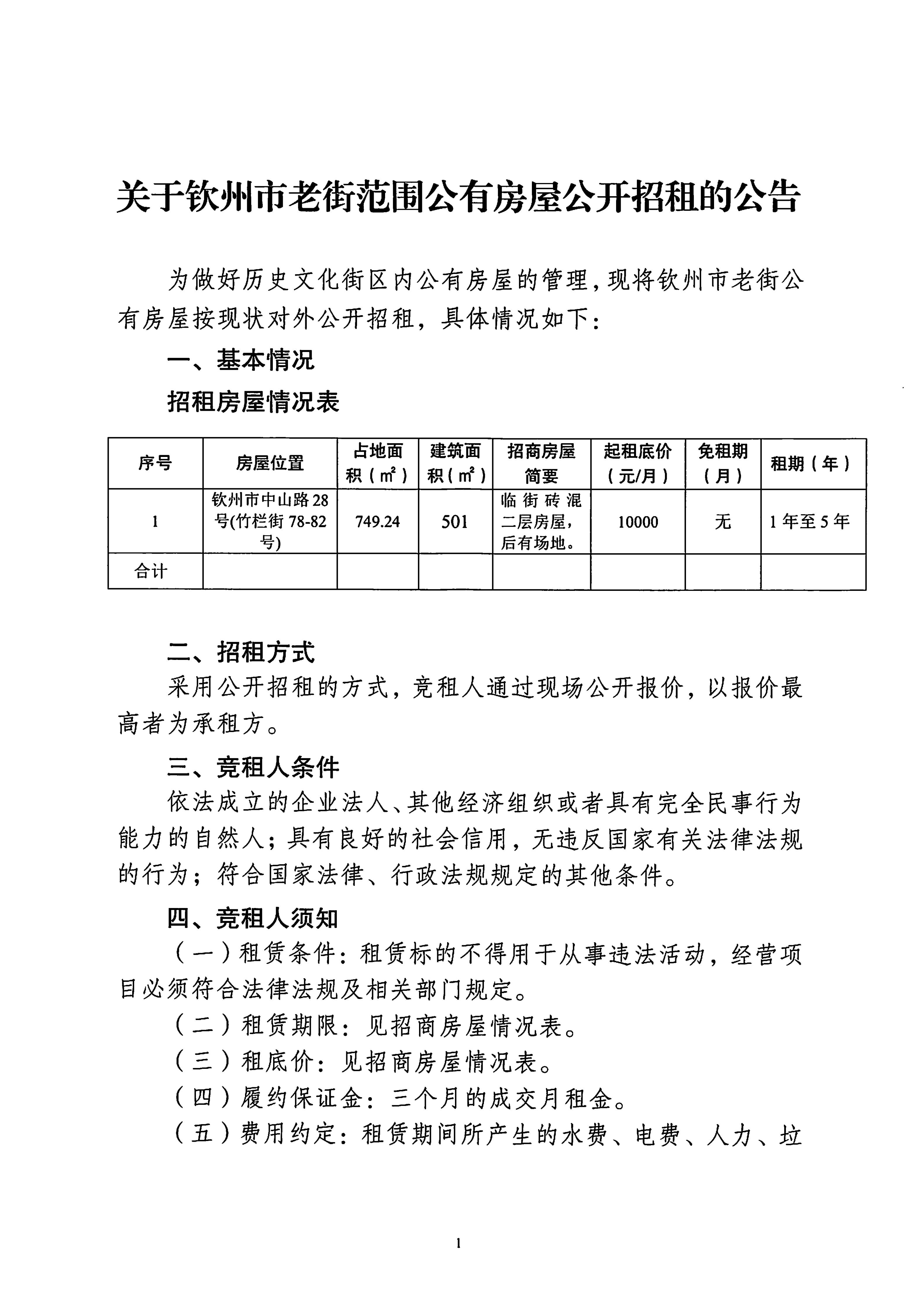 欽州市中山路28號竹欄街78-82號房屋公開招租公告